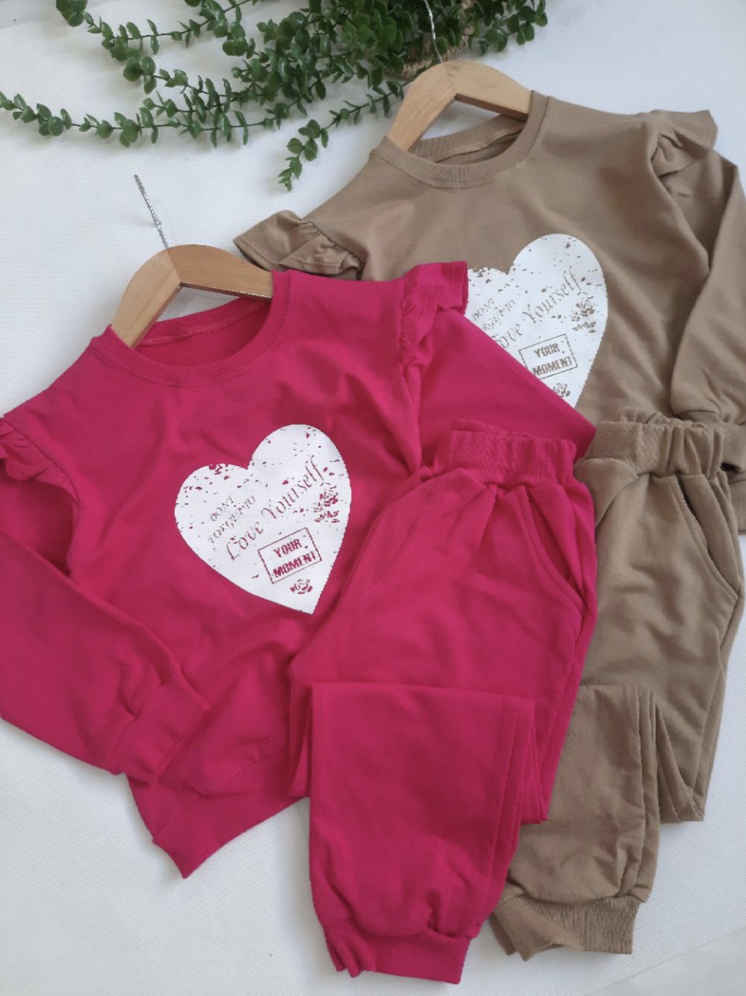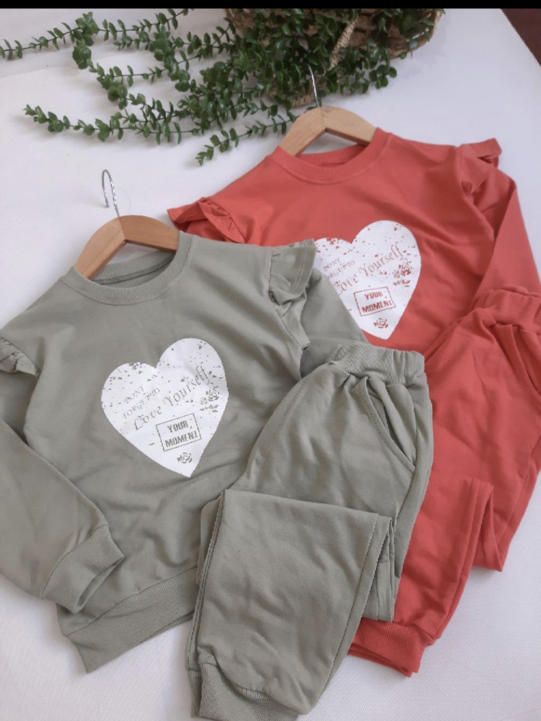 فروش عمده ست بلوز شلوار قواره ازاد آستین پر قلبی سایز 40 .45. 50 و55